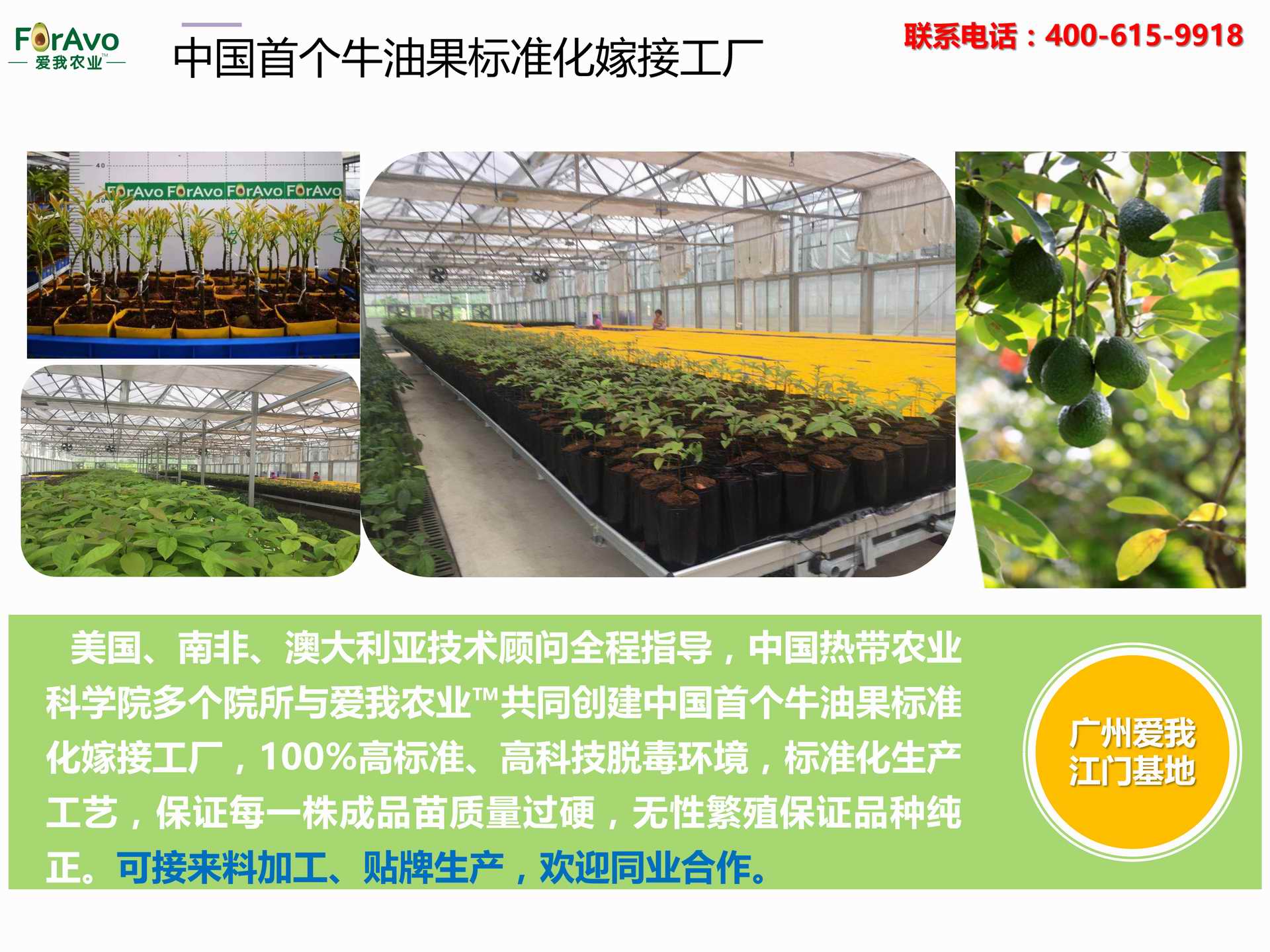 海南愛我農業科技有限公司是一家綜合性的高科技農業發展企業,旗下愛我農業TM致力于打造中國最大最強的牛油果種植企業。依托美國、南非、澳大利亞等擁有百年牛油果繁育、種植歷史以及產業鏈市場的優勢,開展牛油果種苗繁育、種植技術,種植加盟、深加工等產業。結合中國市場,面向廣大苗圃基地、種植農場、合作加工等企業,推出的適合規?;?、標準化的牛油果全產業鏈服務。 Hainan Foravo Agricultural Technology Co., Ltd. is a comprehensive high-tech agricultural development enterprise , dedicated to building the largest and most powerful avocado plantation enterprise in China. Relying on the advantage of avocado nursery, planting history, and the industrial chain over 100 years in the United States, South Africa, Australia, we are carrying out nursery, planting, proce...